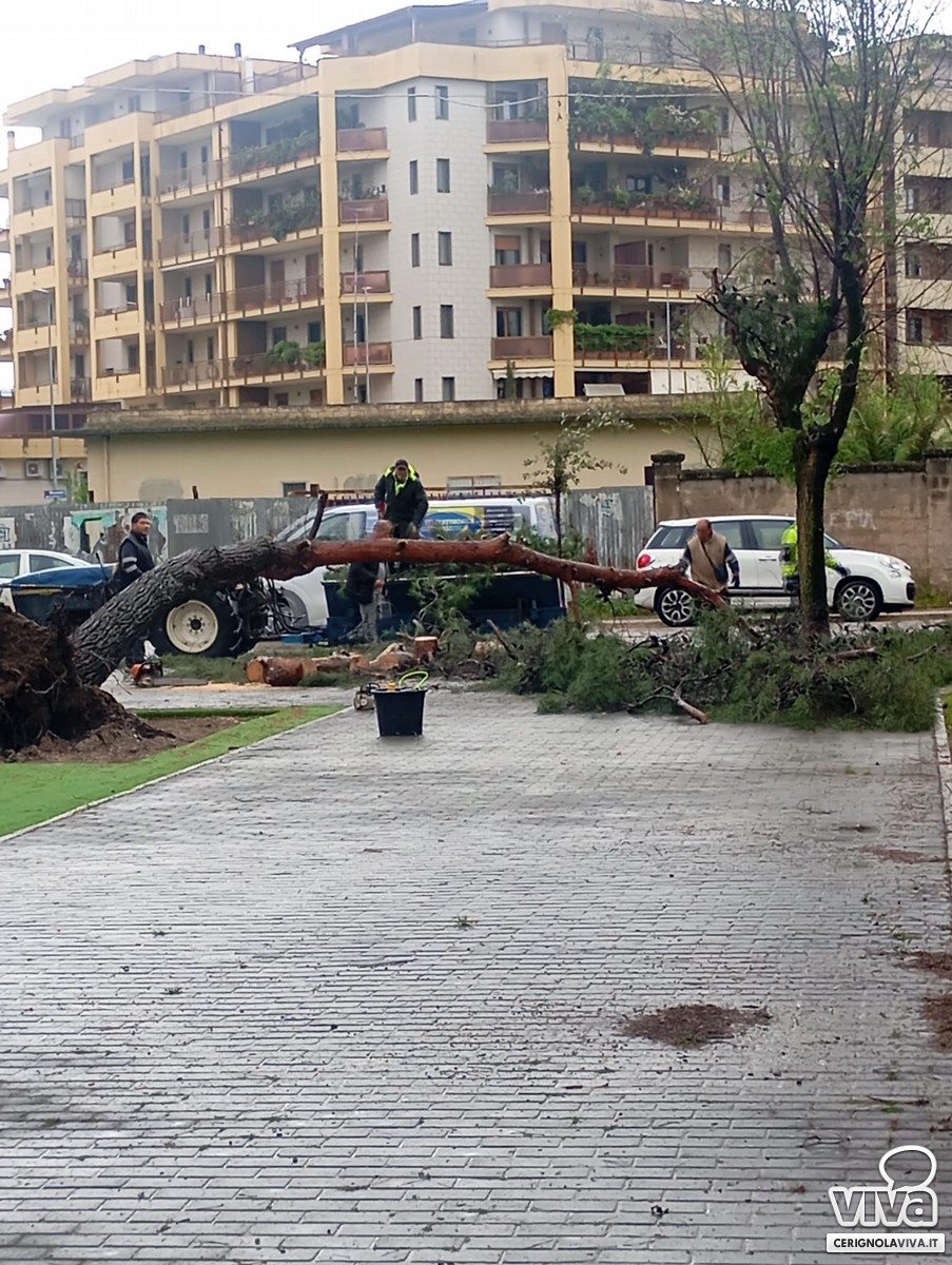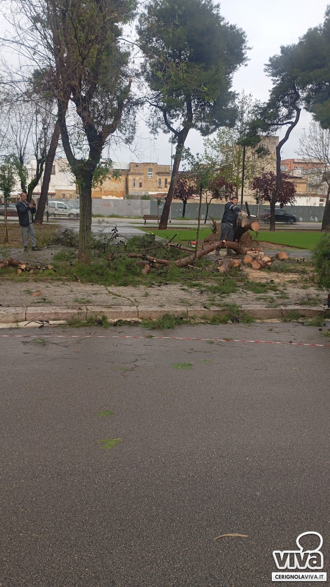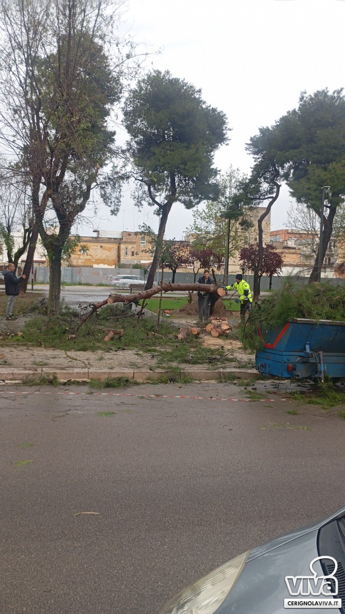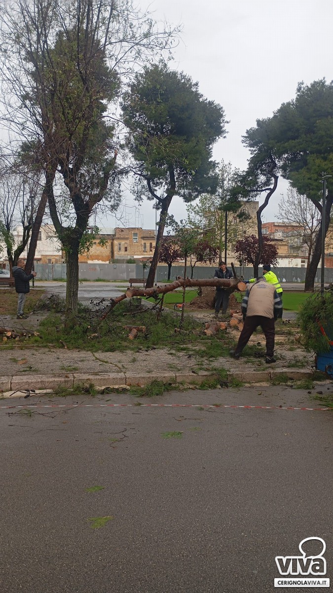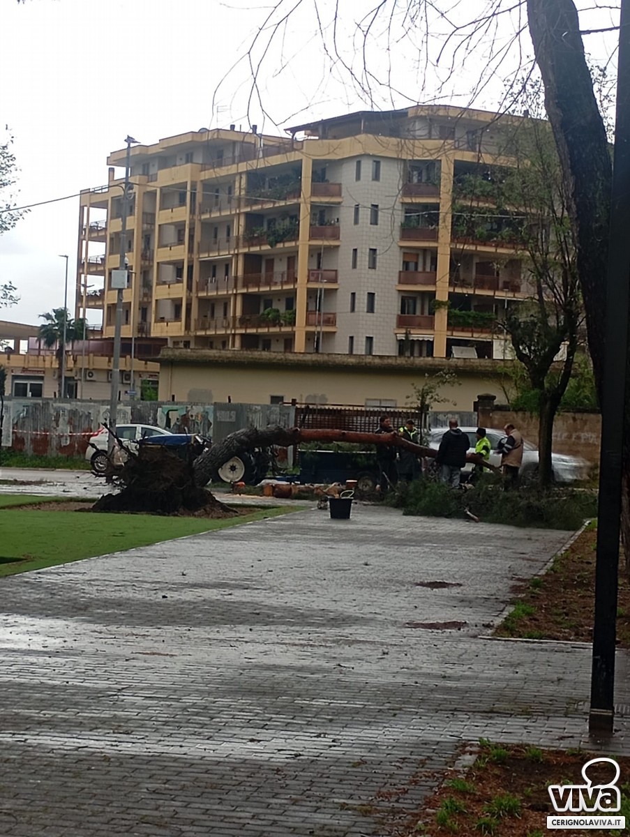 Il maltempo di questa mattina a Cerignola ha causato il cedimento di un albero nel nuovo parco verde di via Milano, recentemente riqualificato dall'amministrazione comunale. Il tronco, sradicato probabilmente a causa del vento e del terreno reso instabile dalla pioggia, è crollato all'interno dell'area.