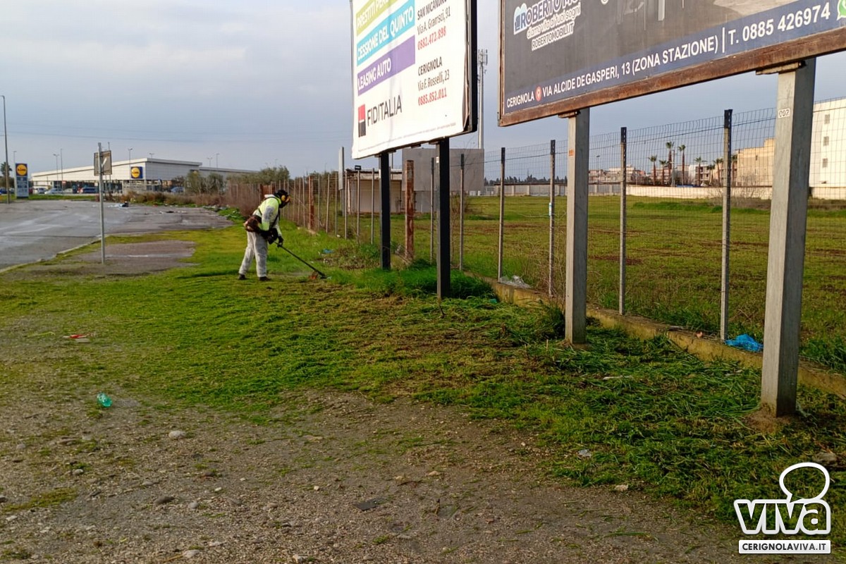 Prosegue nel pieno e rigoroso rispetto del programma il lavoro degli operatori della cooperativa incaricata della cura del verde pubblico a Cerignola, impegnati tutti i giorni nei lavori di manutenzione, sfalcio dell'erba e potature degli alberi. Verrà seguito un cronoprogramma ben definito che si svilupperà nel corso delle prossime settimane.