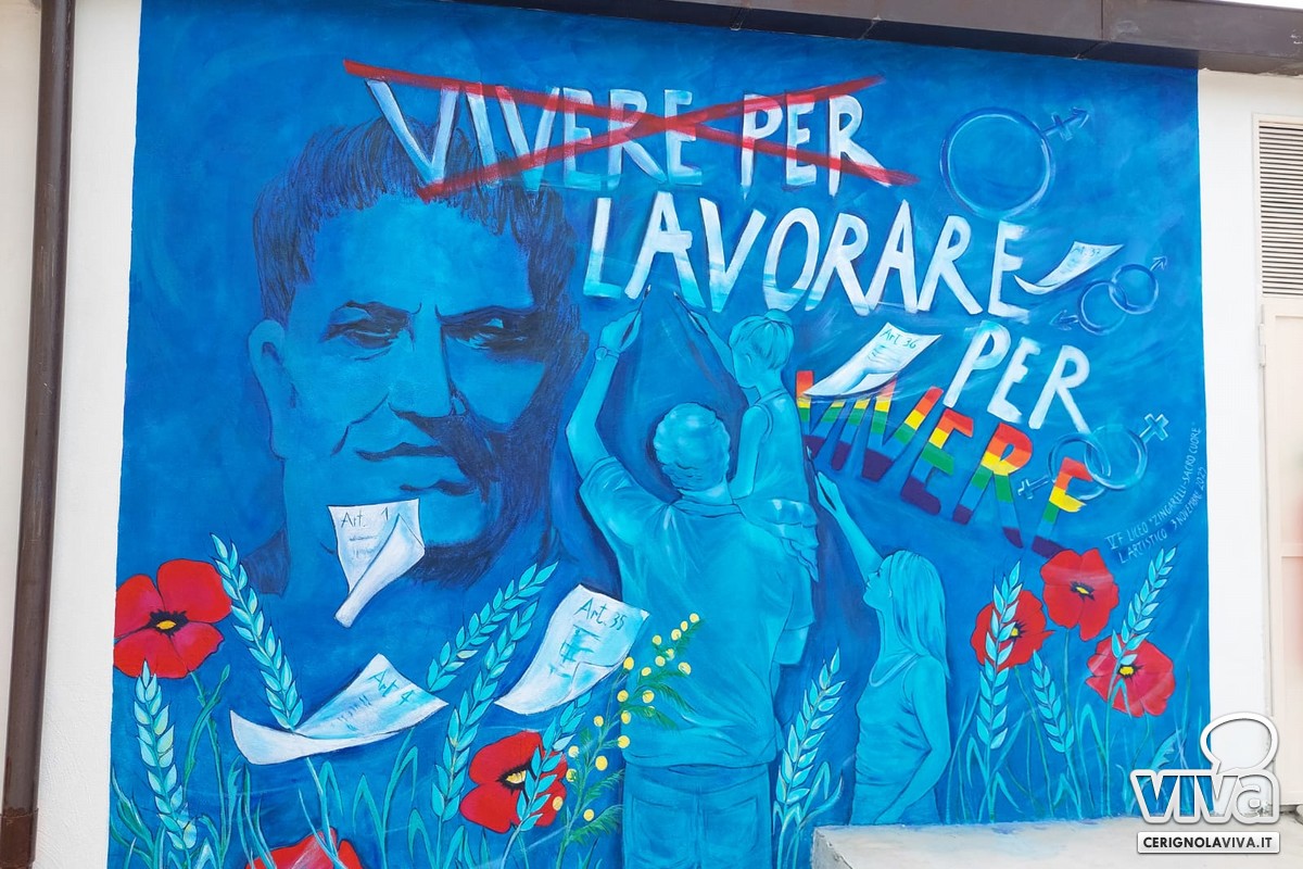 Ecco il murale per Giuseppe Di Vittorio: completa l'opera degli studenti del Liceo Zingarelli-Sacro Cuore