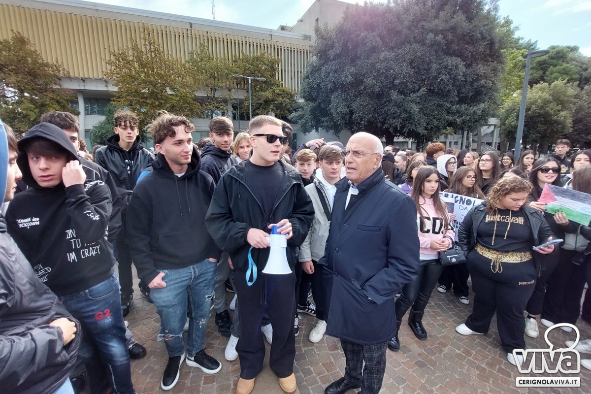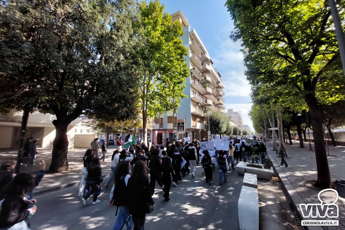 Decine di studenti delle scuole superiori di Cerignola hanno partecipato a una manifestazione di solidarietà nei confronti della popolazione della striscia di Gaza e dei volontari e degli attivisti della Global Sumud Flotilla. L'iniziativa, nata spontaneamente nelle scorse ore, è stata organizzata dai rappresentanti delle scuole superiori cittadine.