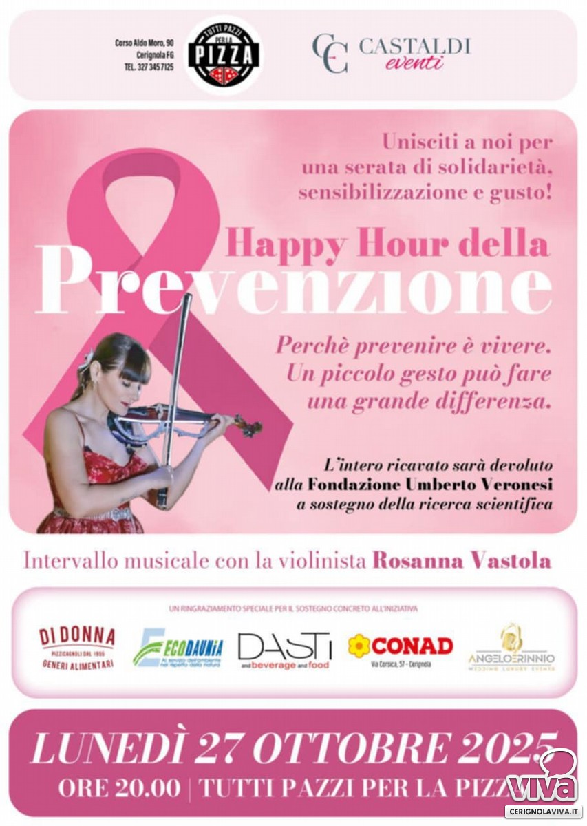 L'evento, intitolato "Happy Hour della Prevenzione" è organizzato da Castaldi Eventi in collaborazione con Domenico Costantino, titolare della pizzeria ospitante l'iniziativa.