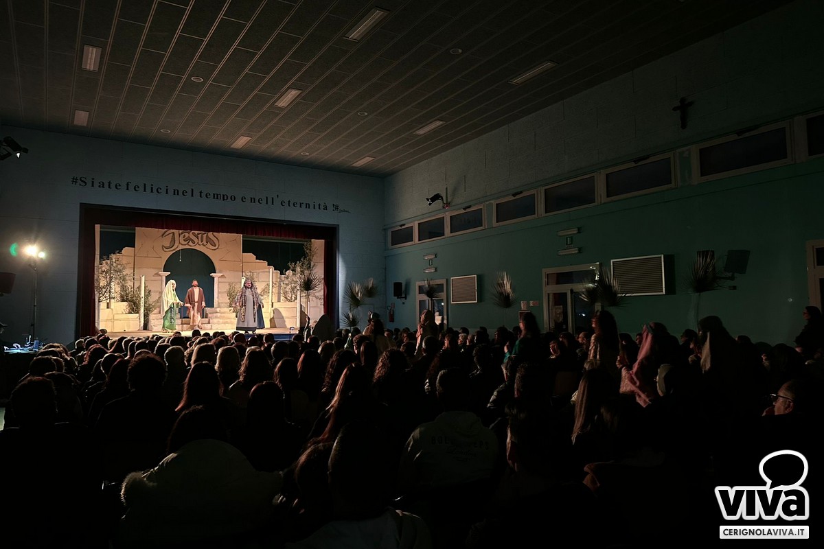 Ieri sera, a Cerignola, al Teatro dell'Istituto Figlie di Maria Ausiliatrice, è andata in scena la replica del musical "Jesus", dopo il debutto di fine marzo. Lo spettacolo si è aperto con una riflessione forte, che ha subito fatto capire il senso del progetto: non una semplice recita, ma qualcosa di più profondo. «Se anche solo per il tempo di questo spettacolo riusciremo a fermarci e a ricordare che ogni uomo è fratello, allora il nostro teatro avrà già compiuto un piccolo miracolo».
