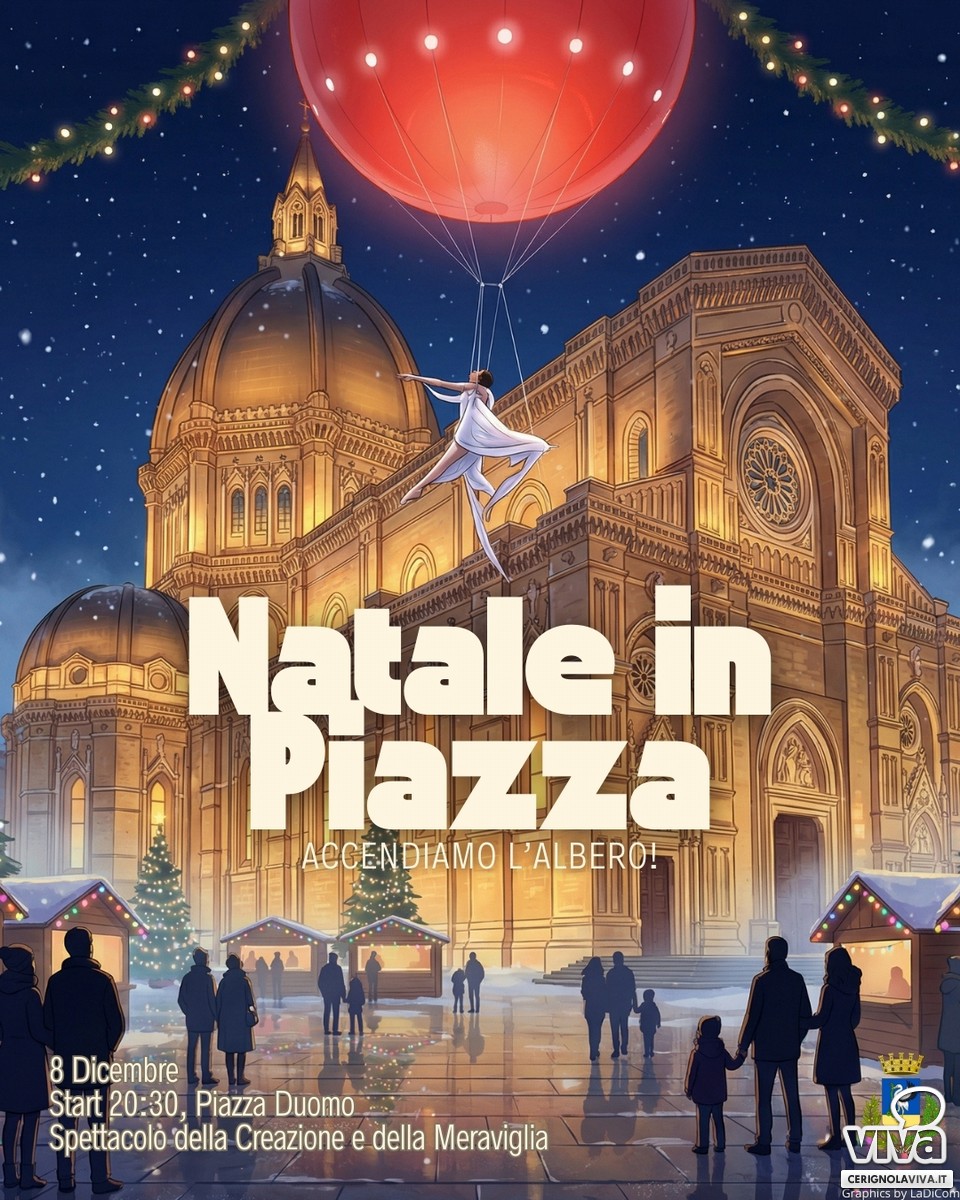 Sarà lo spettacolo della creazione e della meraviglia ad accompagnare l'accensione dell'albero di Natale che avverrà lunedì 8 dicembre in Piazza Duomo, a Cerignola. L'esibizione, eseguita dalla Compagnia dei Folli, inizierà per le ore 20:30.