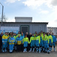 Il taglio del nastro alla presenza del Vescovo, il container intitolato alla figura di Gino Battaglini