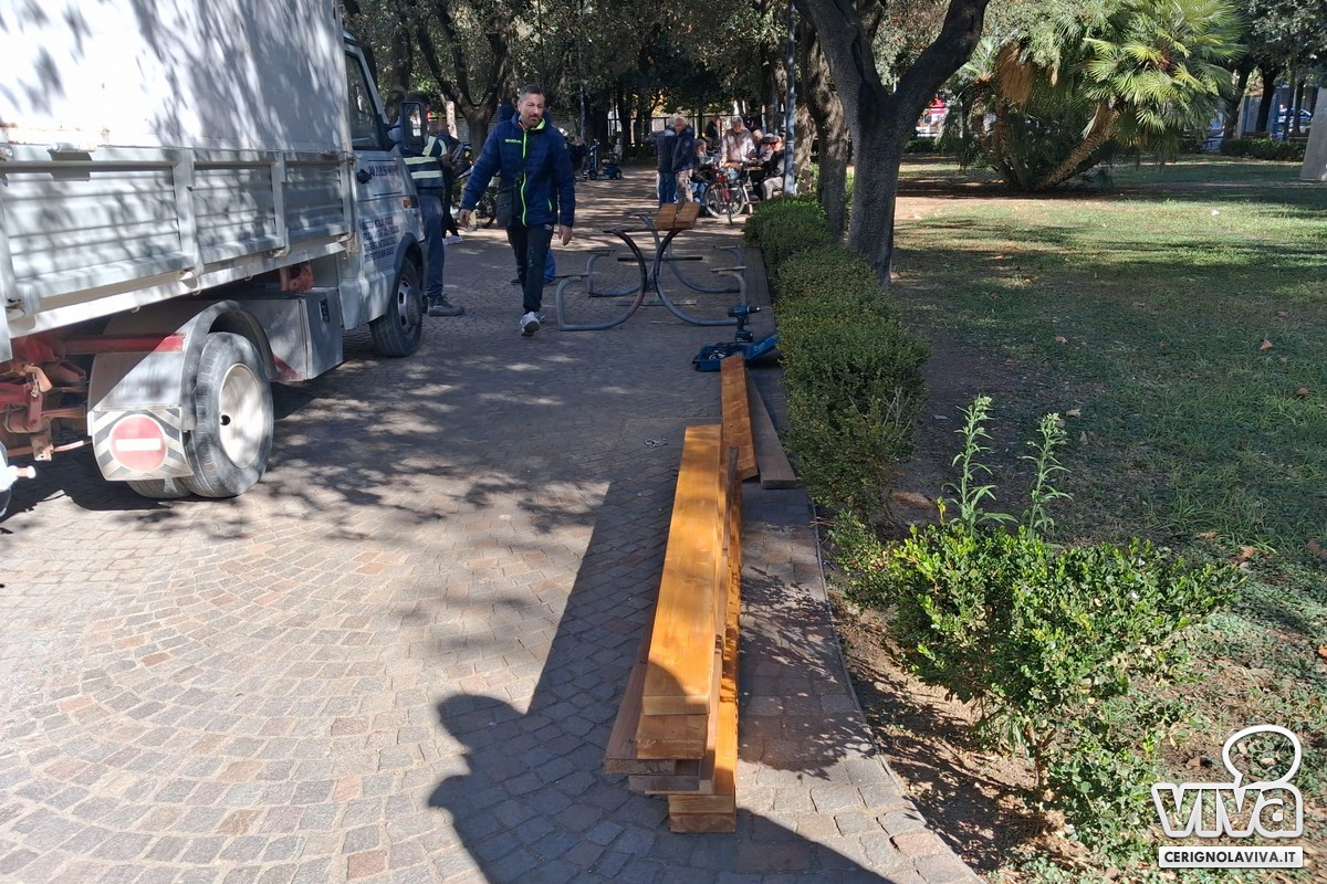 Tavolini e panchine ubicati in Villa comunale erano stati vandalizzati pochi giorni fa e oggi sono stati ripristinati.