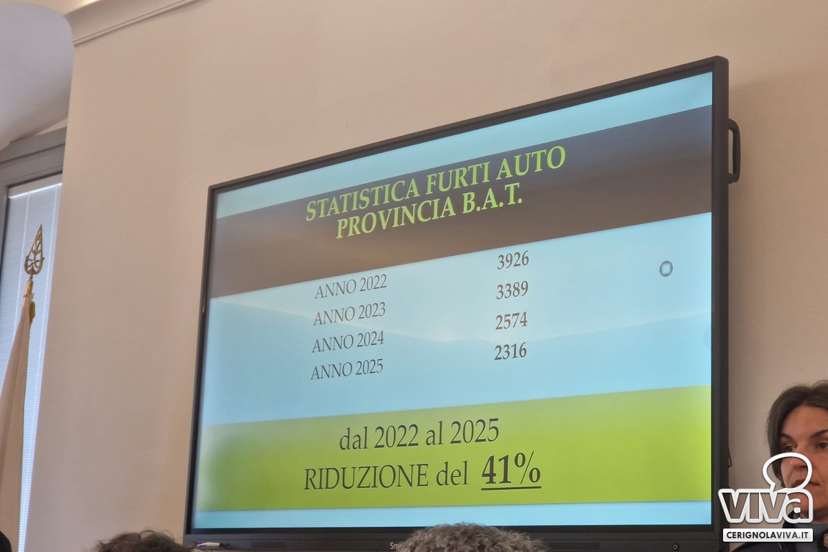 Alle prime ore di martedì 31 marzo, su ordine della Procura della Repubblica presso il Tribunale di Trani, la Polizia di Stato della BAT, in collaborazione con il Comando della Polizia Locale di Barletta, ha eseguito l'ordinanza che dispone misure cautelari nei confronti di 15 cerignolani (12 in custodia cautelare in carcere e 3 agli arresti domiciliari) ritenuti responsabili, a vario titolo, dei reati di associazione a delinquere finalizzata al furto, riciclaggio e ricettazione di autovetture.