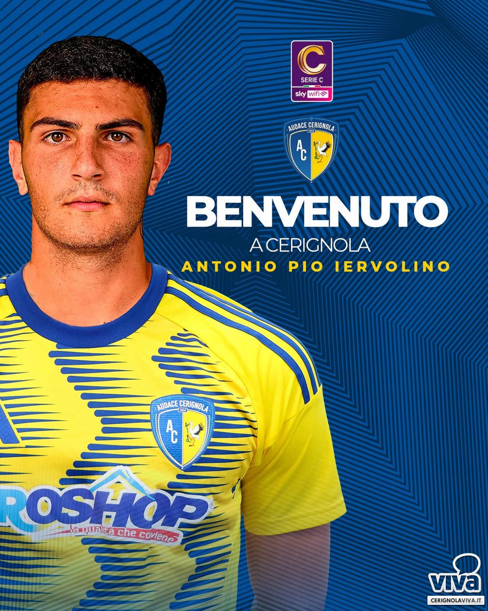 La S.S. Audace Cerignola S.r.l. rivolge ad Antonio Pio Iervolino un caloroso benvenuto, augurandogli le migliori soddisfazioni personali e sportive con la maglia gialloblù.