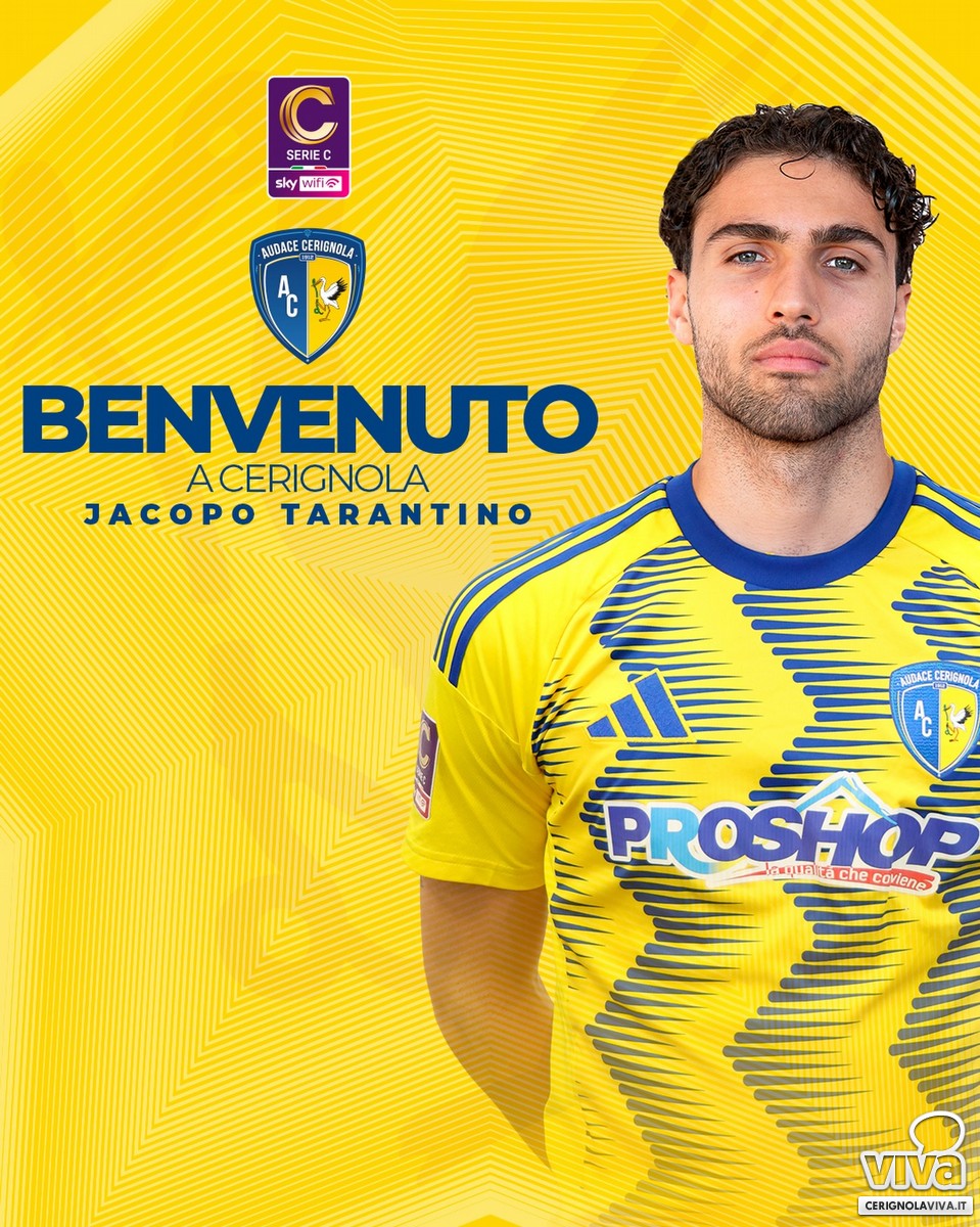 La S.S. Audace Cerignola S.r.l. rivolge a Jacopo Tarantino un caloroso benvenuto e i migliori auguri di soddisfazioni personali e successi sportivi con la maglia dell'Audace Cerignola.