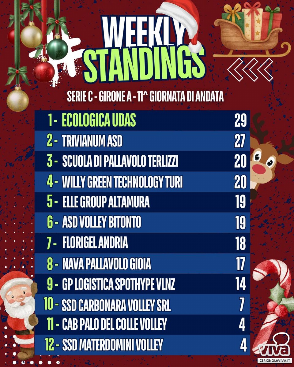 Il 2025 si conclude con un'altra meritatissima vittoria di Ecologica Udas Pallavolo Cerignola, che domenica scorsa, in trasferta a Bari, ha battuto per 3 set a 0 la Carbonara Volley.
